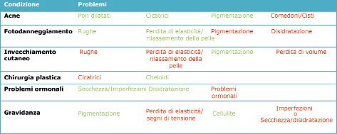 La seguente tabella chiarirà cosa sono i problemi primari e quelli secondari della pelle: